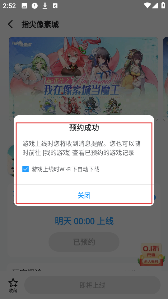 4、预约成功后,会收到预约成功的提示,游戏上线时能收到消息提醒,还可设置Wi-Fi下自动下载哦。