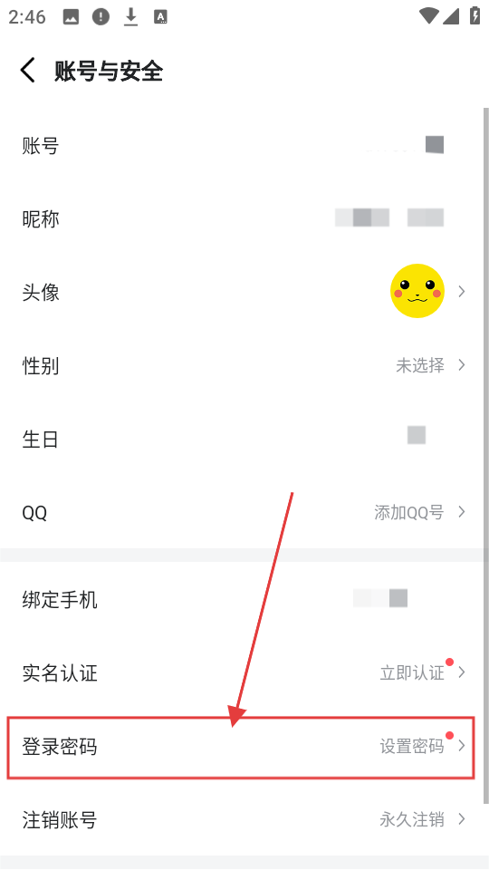 3、在账号与安全页面,若想设置登录密码,就点击【登录密码】选项,准备设置密码。