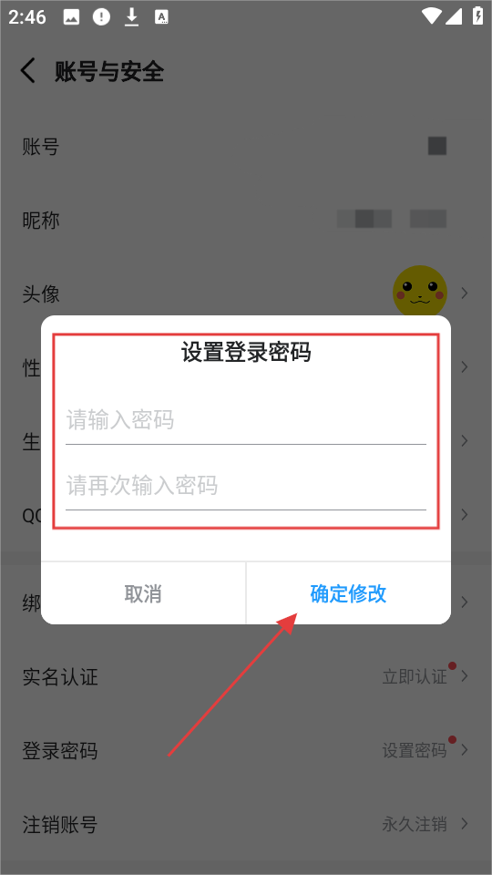 4、弹出设置登录密码的窗口,输入密码并再次输入确认,然后点击【确定修改】,就设置好啦。