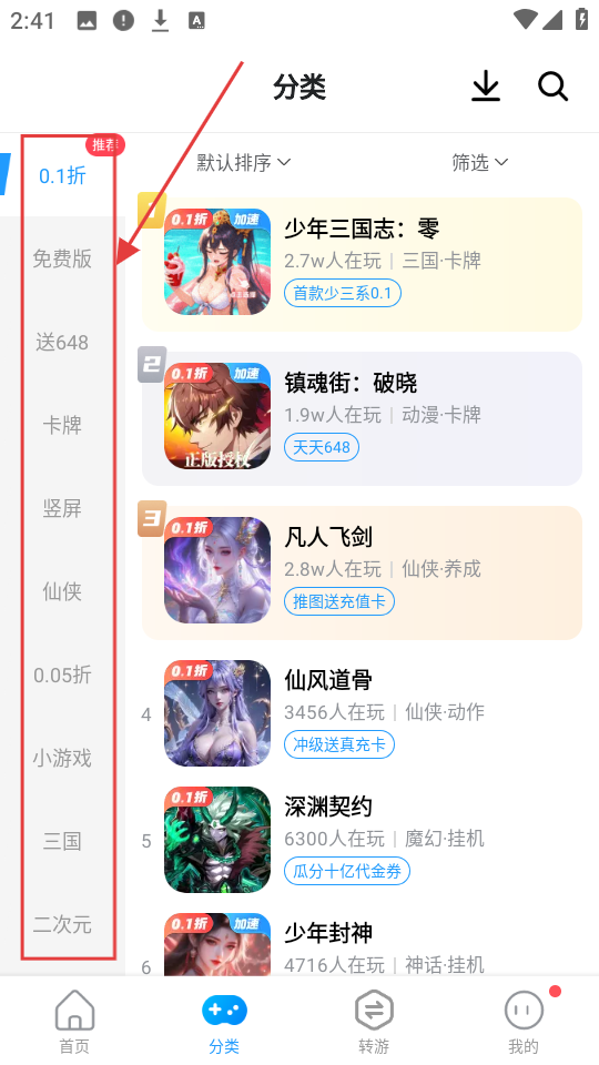 1、我们进入软件分类页面,左侧有不同分类选项,若想找特定类型游戏,点击对应分类,就能筛选出相关游戏啦。