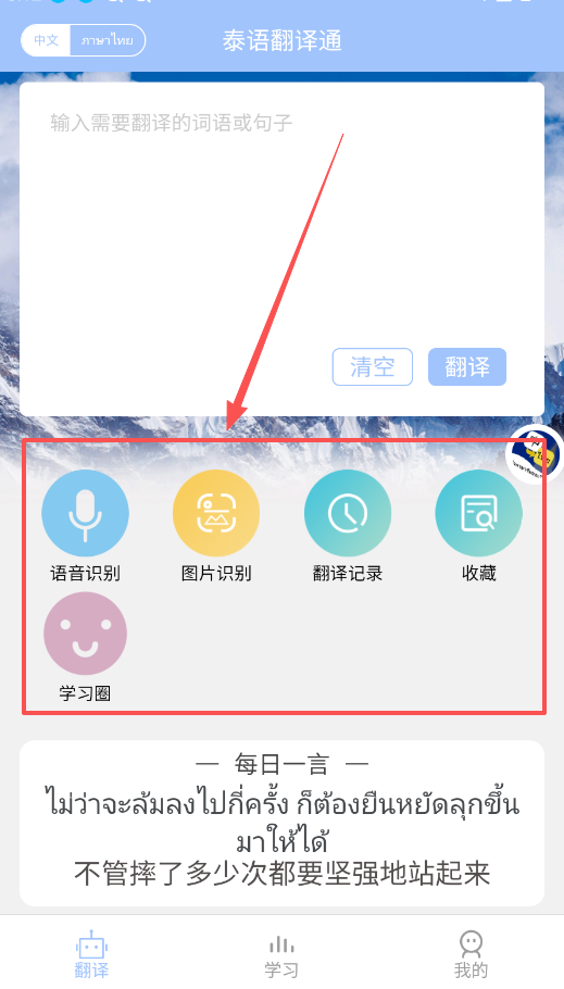 1、文字输入翻译:泰语翻译通的用户可以将泰语文字输入到软件中进行翻译,支持单词和句子的翻译。