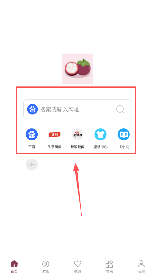 4、在导航页能直接搜索或输入网址,快速访问头条、百度、新浪新闻等常用站点,也可以使用找小说等内置功能。