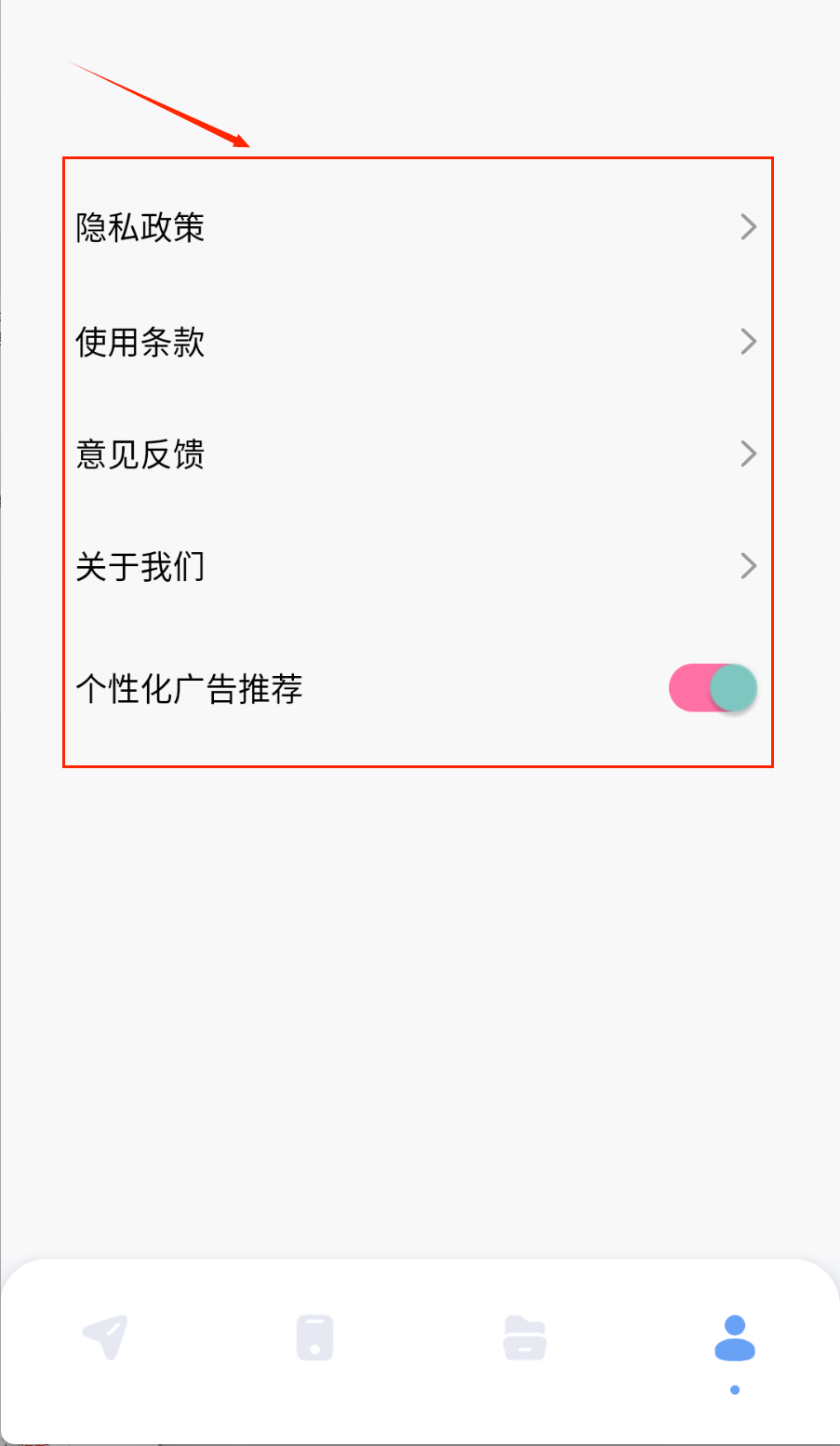1、进入个人中心进行设置是第一步,打开软件后点按“我”的标签,就能看到隐私政策、使用条款等列表。点击箭头进入可阅读条款。
