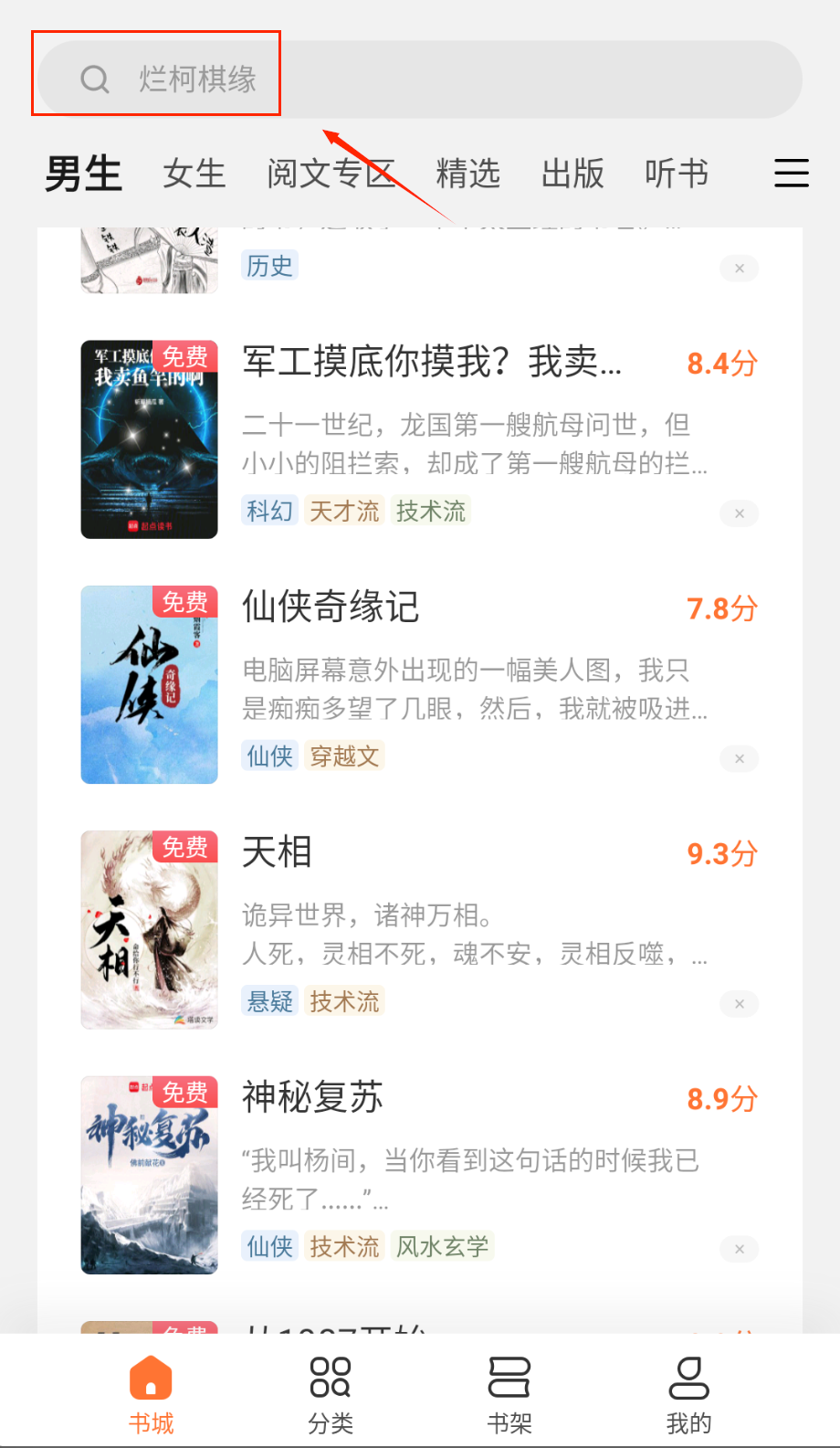2、通过顶部搜索功能直接查找已知作品,或者浏览"推荐榜""人气榜"等榜单发现热门小说,榜单会显示作品类型和特色标签。