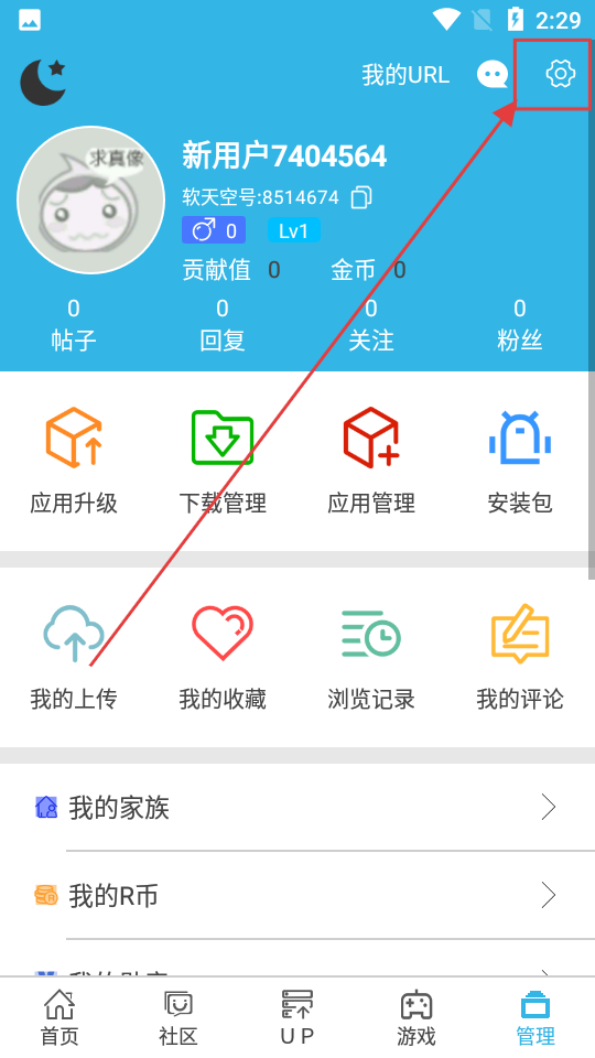 2、进入个人管理页面后,点击右上角设置图标,可进入设置页面哦。