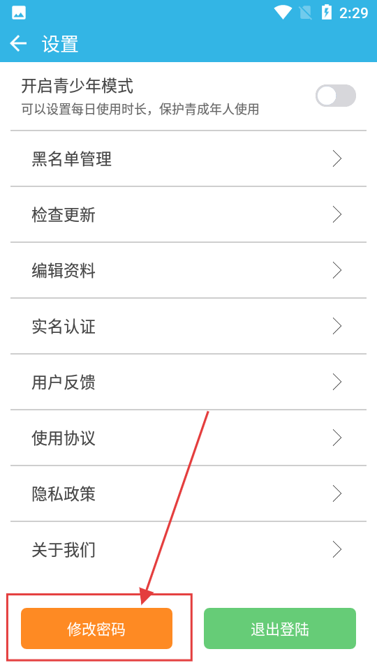 3、在设置页面,点击【修改密码】,可进入修改密码页面啦。