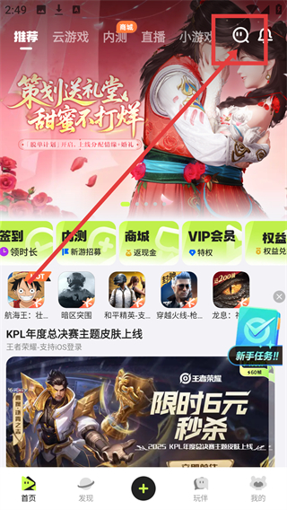 1、在腾讯先锋首页,点击右上角聊天图标,可进入搜索页面,准备查找游戏啦。