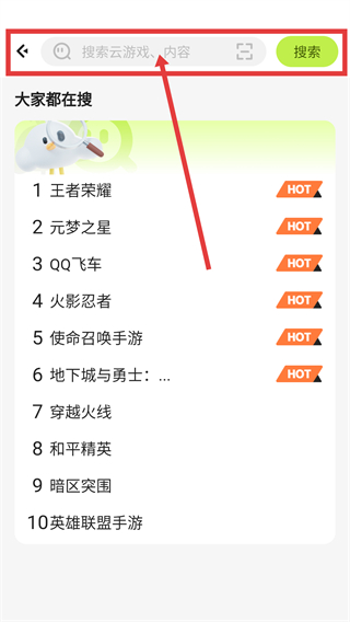 2、进入搜索页面后,在搜索框输入游戏名,如【王者荣耀】,点击【搜索】,可获取相关游戏结果哦。