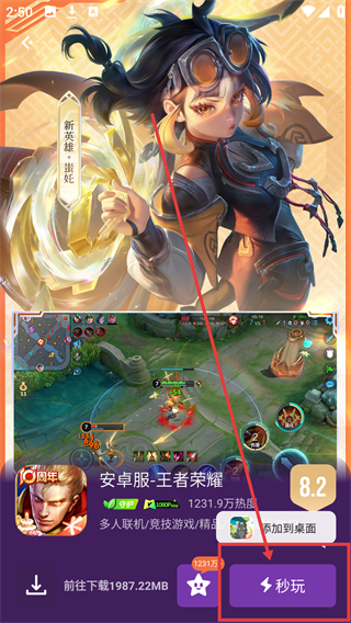 4、在游戏详情页,点击【秒玩】,即可开始游玩游戏,享受游戏乐趣哦。