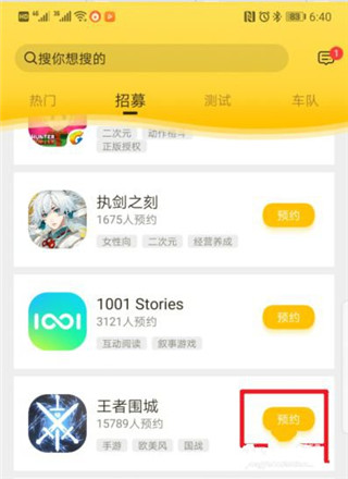 4、我们向下滑动找到自己感兴趣的游戏,然后点击后面的预约的选项。