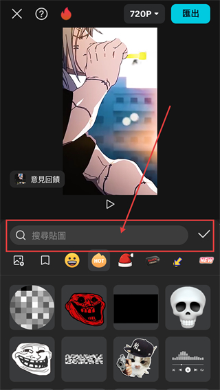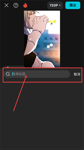 1、在视频编辑界面,点击底部的【貼圖】选项,打开贴图功能面板,可给视频添加趣味装饰元素啦。