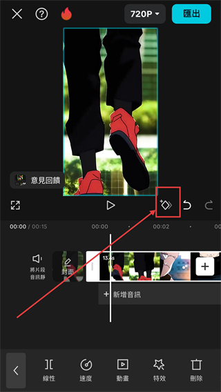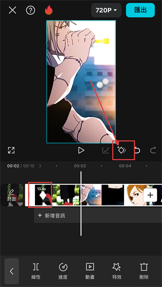 2、进入剪辑功能后,视频右下角会出现关键帧的图标,点击即可添加关键帧啦。