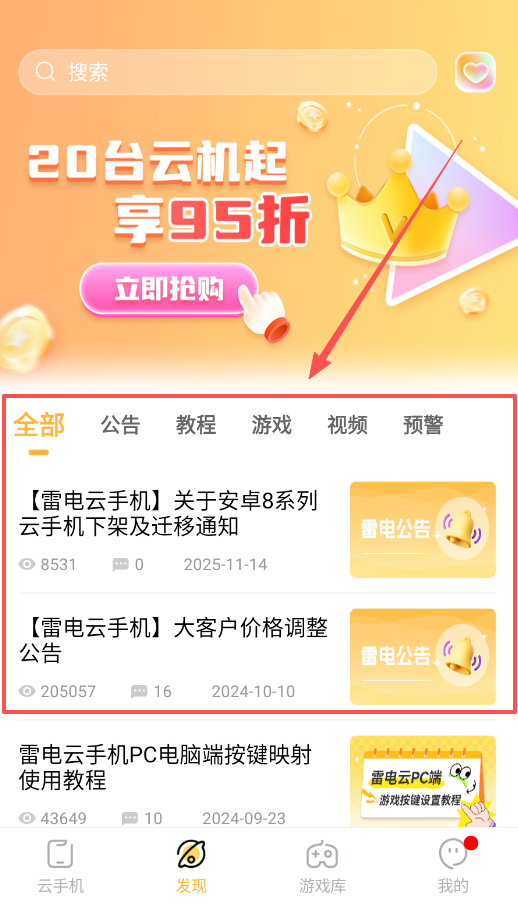 3、“发现”页面是你的信息中心,官方教程、价格公告和活动优惠都在这里发布,是获取重要资讯的关键渠道。