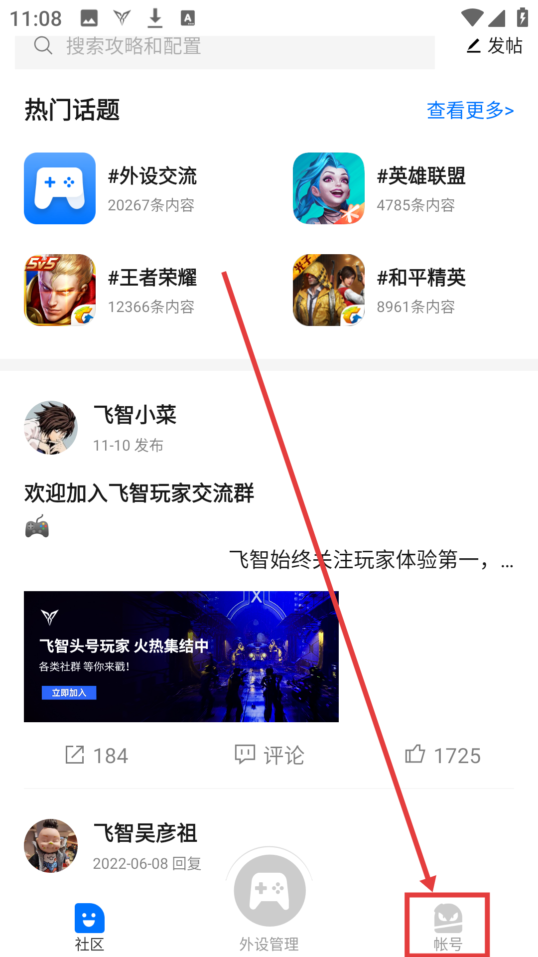 1、点击【帐号】,进入个人界面,可进行账号相关设置操作哦。