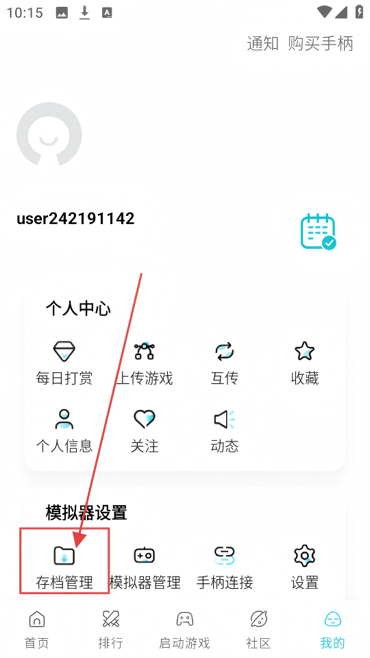 2、个人页面里,找到【存档管理】,点击它能进入存档管理页面,管理游戏存档超方便。