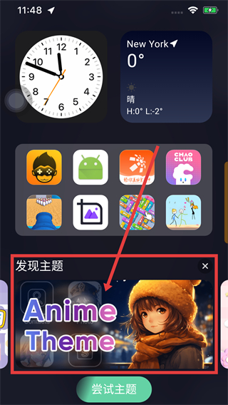 1、在桌面点击【发现主题】里的推荐内容,就能进入主题选择页面,挑选喜欢的界面主题啦。