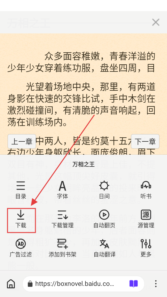 1、在小说阅读页面,点击【下载】,可将当前章节加入下载队列,方便离线阅读啦。
