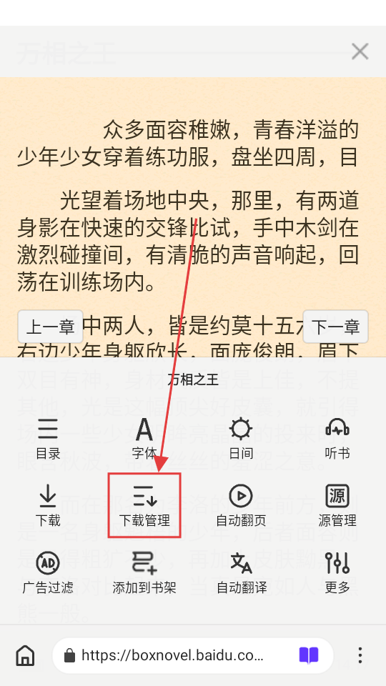 3、在小说阅读页面,点击【下载管理】,可进入下载管理页面,查看下载进度啦。