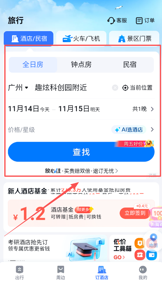 4、有住宿需求时,进入酒店板块选好入住日期,再用价格筛选功能挑一挑,用它们订房能省下一些钱呢。
