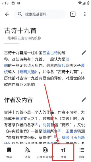 1、在文章页面点击底部的【主题】按钮,就能打开阅读设置界面,调整文字显示相关的参数啦。