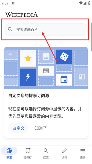 1、在维基百科首页点顶部【搜索维基百科】框,能进入搜索界面,后续可输入关键词查找内容啦。