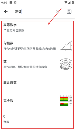 3、在搜索框输入【高数】后,会出现相关条目列表,像【高等数学】这类目标条目就能直接选啦。