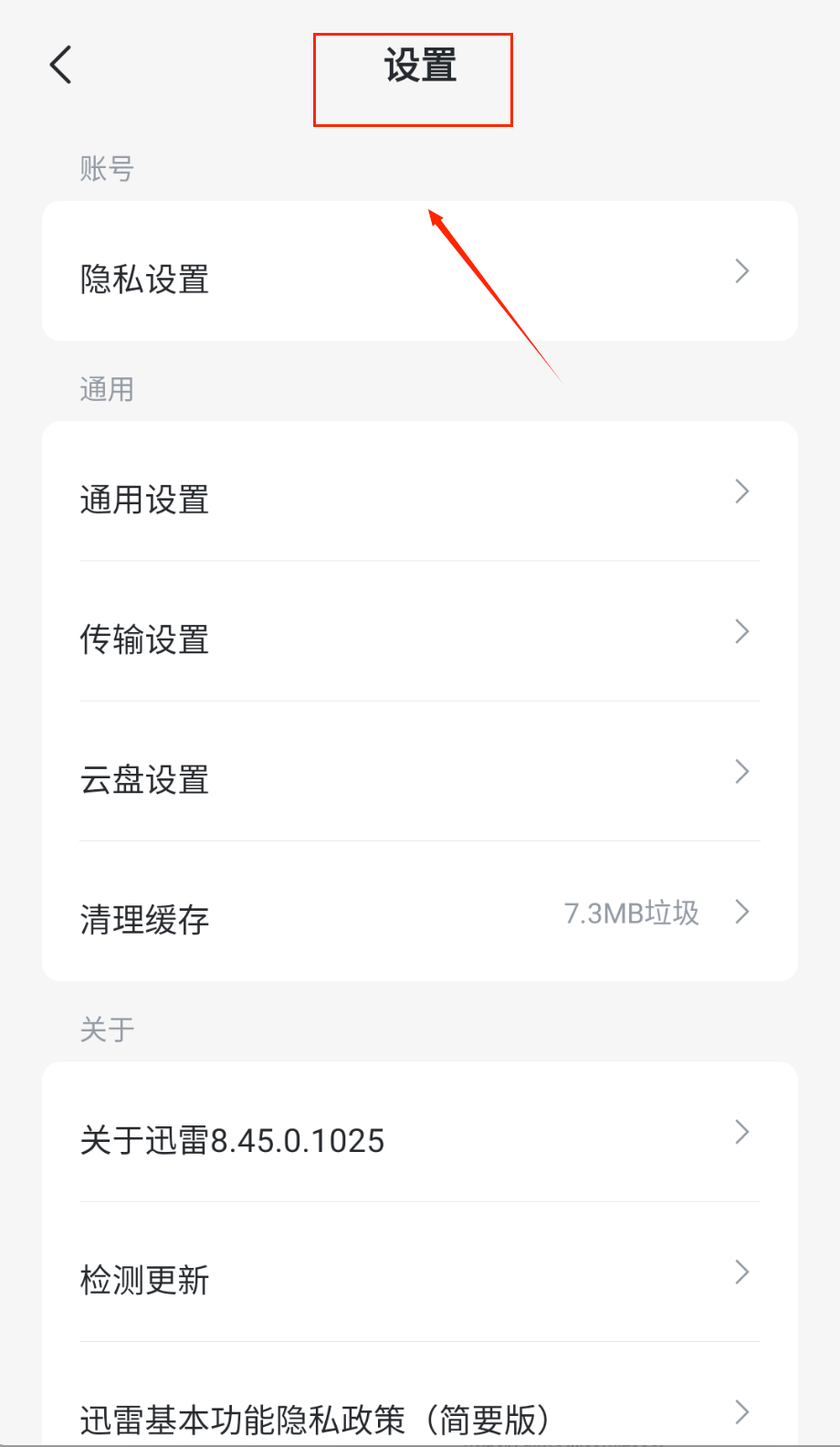 3、设置选项不要忽视,账号安全是首位,通用设置影响日常使用,传输设置关乎速度,关于页面了解软件版本信息哦。