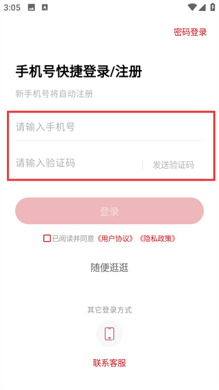 2、点击【立即体验】,进入手机号快捷登录/注册页面,准备登录账号。