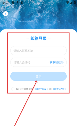 4、在邮箱登录页输入邮箱地址和验证码,勾选协议后点击【登录】,就能完成账号登录啦。
