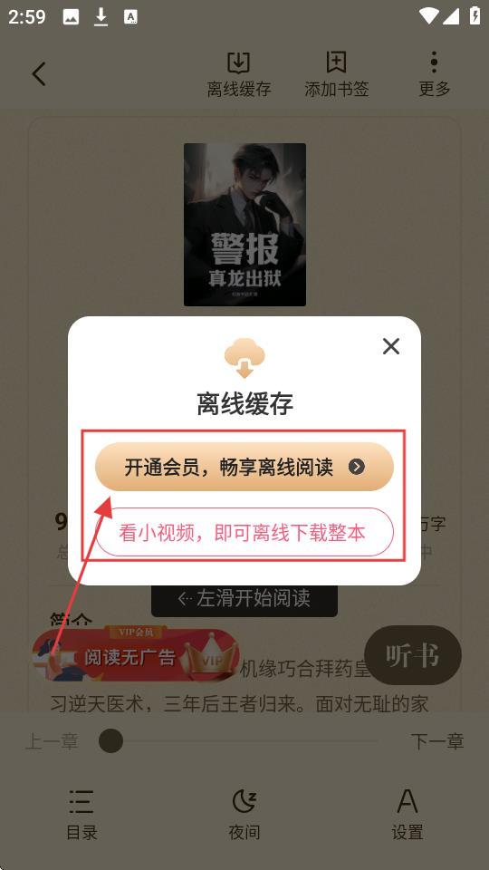2、进入小说详情页后,顶部有【离线缓存】按钮,点击它可开启离线缓存功能,方便离线时阅读啦。