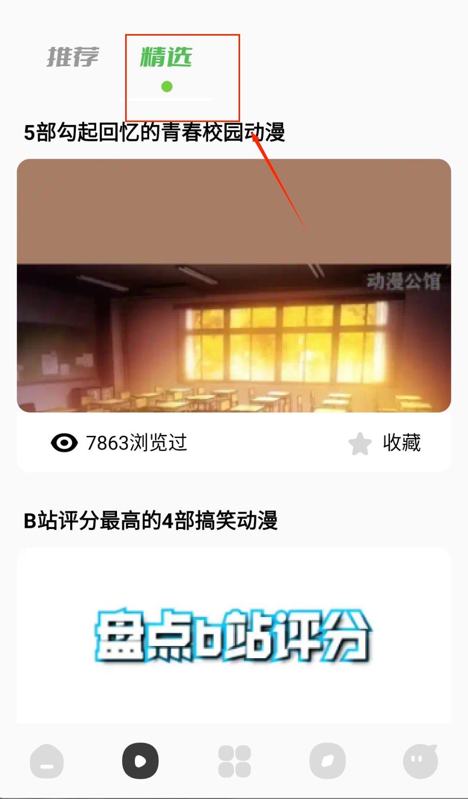 3、每个推荐都有"收藏"按钮,遇到心仪的作品记得点亮小心心,这样就不会错过更新,还能生成个人专属片单。