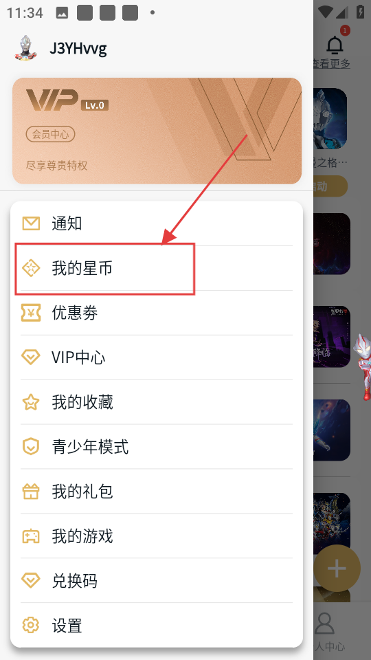 2、在功能列表中点击【我的星币】,就能进入星币管理界面啦。