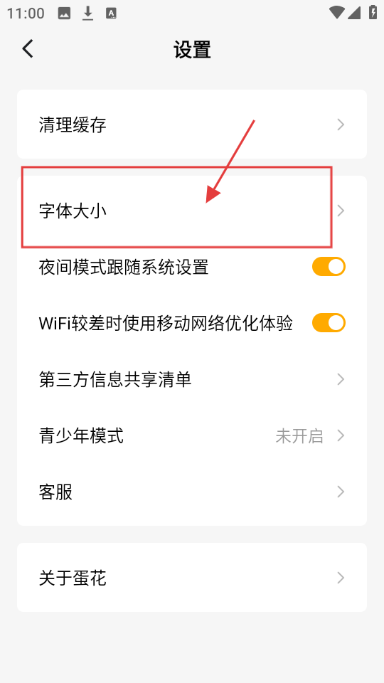 3、在设置里,【字体大小】选项很贴心,点击它就能调整字体大小,快去试试。