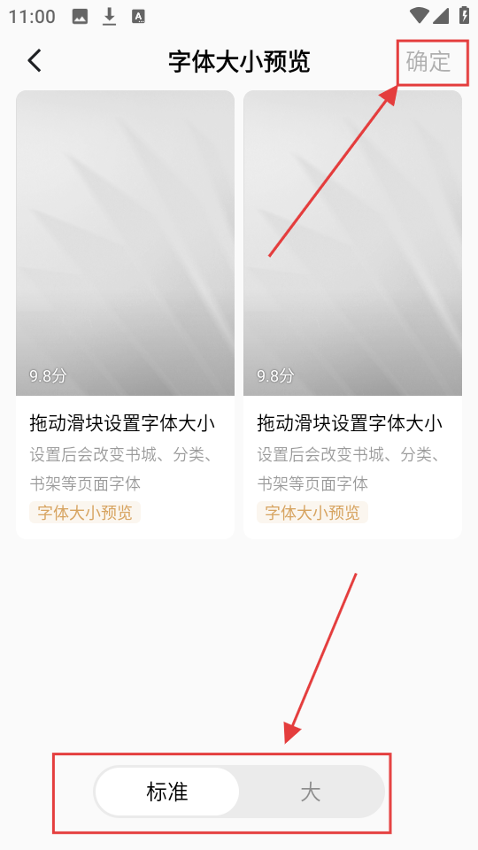 4、调整字体时,拖动【标准-大】滑块选喜欢的大小,再点【确定】就搞定啦。