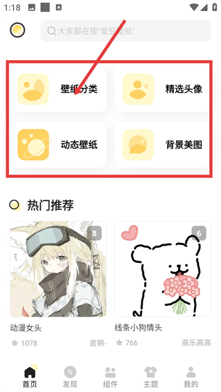 1、在首页点【壁纸分类】选项,能进入壁纸分类页面,后续可挑选喜欢的壁纸风格啦。