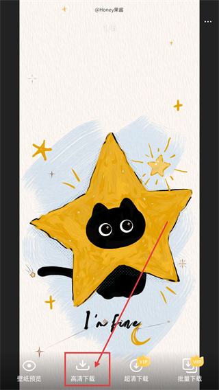 4、选中心仪的壁纸后,点底部【高清下载】按钮,就能把这张壁纸保存到设备里啦。