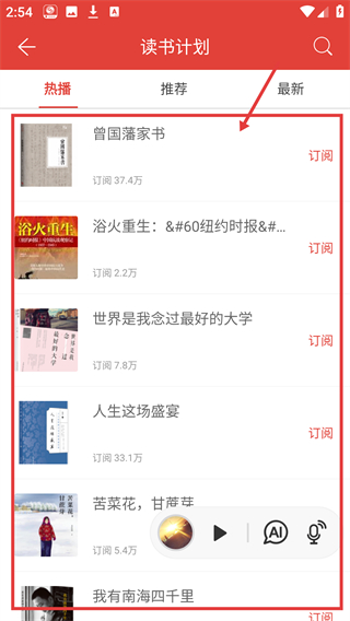2、进入分类页面后,选择【读书计划】分类,可进入对应的内容列表,查看相关的读书节目哦。