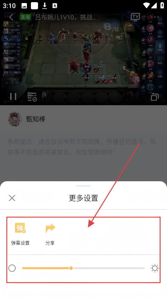 4、在更多设置页面,还可以进行弹幕设置、分享以及调节亮度等操作,能满足不同的需求哟。