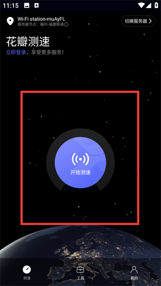 1、在【花瓣测速】的测速页面,找到中间的【开始测速】按钮并点击,就能启动网络速度的检测流程啦。