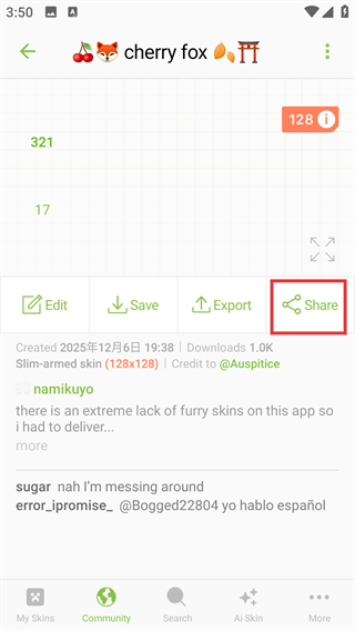 允许用户导入和导出自己的皮肤和纹理。这使得用户可以在不同的设备和平台之间分享自己的作品。