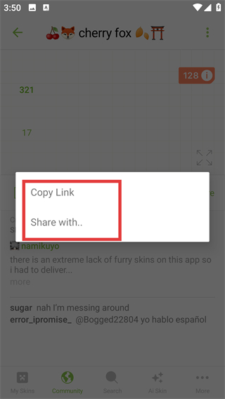 4、在分享弹窗里选择【Copy-Link】选项,就能复制该皮肤的链接,方便分享给其他好友使用啦。