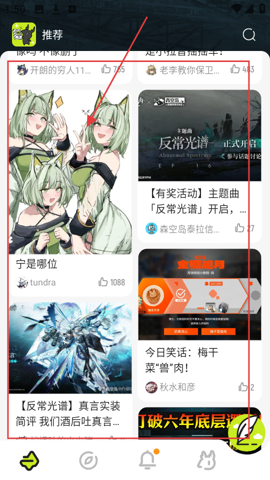 1、看到推荐页面里有趣的内容,像【宁是哪位】这类帖子,可点击进去瞧瞧,说不定能发现游戏新乐趣呢。
