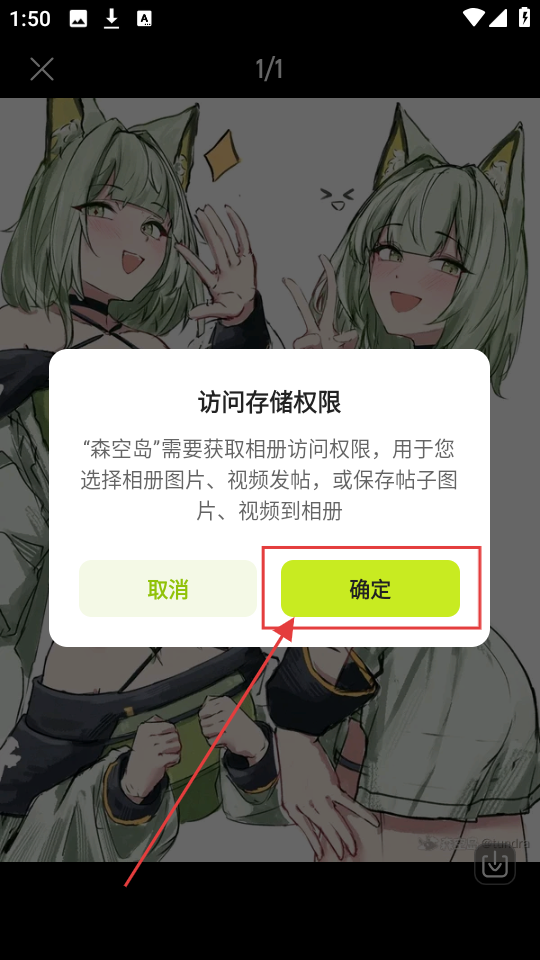 4、首次下载时,会弹出访问存储权限提示,记得点击【确定】,这样才能顺利把图片存到相册哦。