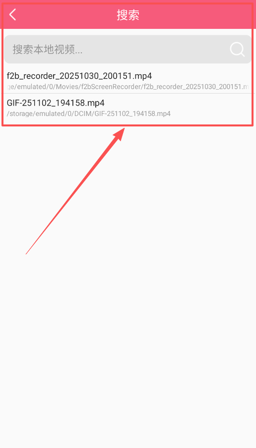 二、扫描完成后,本地视频会以列表形式展示,像示例中的f2b_recorder_20251030_200151.mp4这样的文件路径也会清晰显示。
