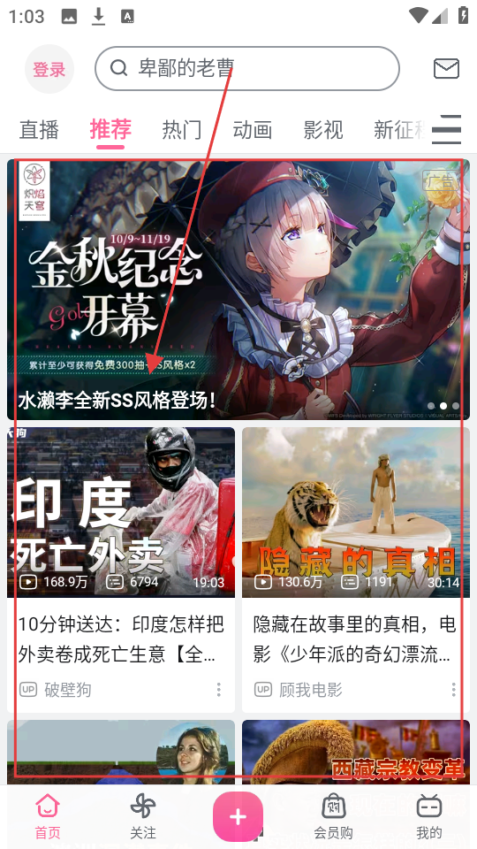 1、在哔哩哔哩首页,挑选想要保存的视频点击,进入视频播放页面吧。