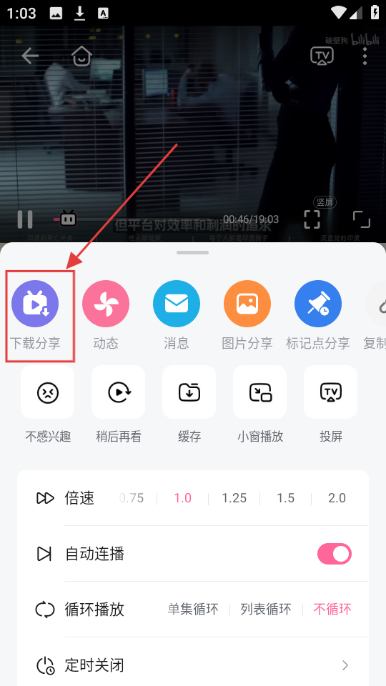 3、展开操作选项后,找到【下载分享】选项点击,就能进行视频下载相关操作啦。