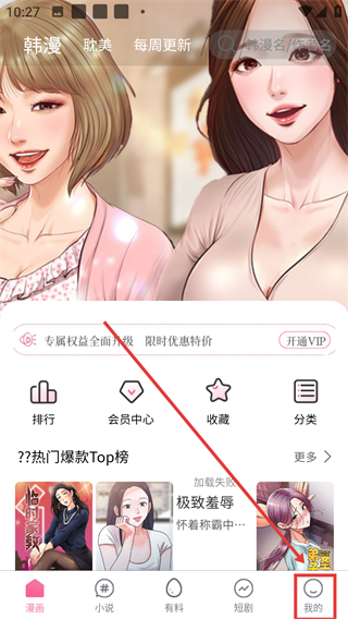 1、在漫画界面点击底部【我的】,进入个人中心,准备查看会员相关的权益哦。