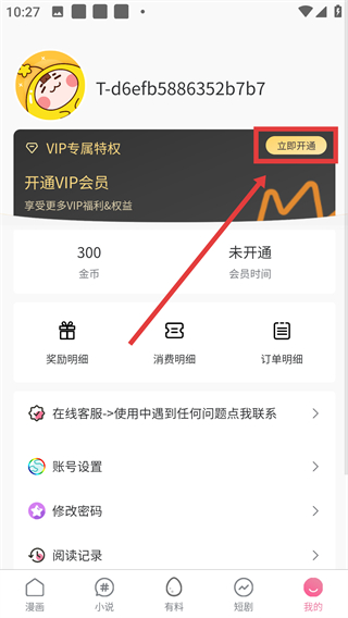 2、在个人中心点击【立即开通】,进入会员开通界面,可查看VIP专属特权啦。