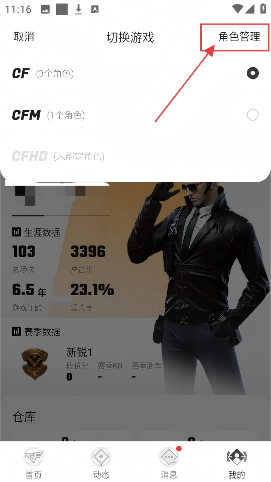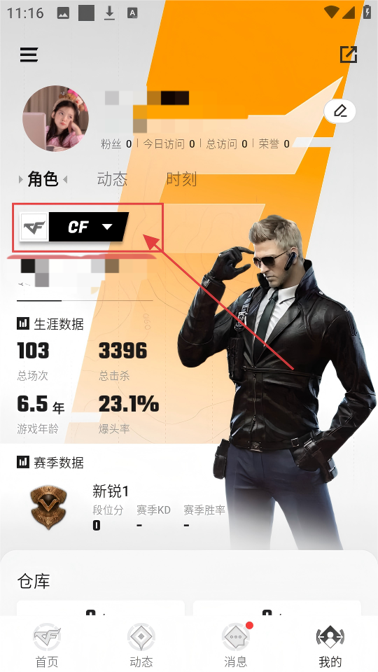 2、在个人页面,点击【CF】下拉框,就可以进行游戏切换等操作哟,轻松管理游戏相关内容呢。