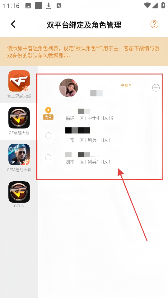 3、进入切换游戏页面后,点击【角色管理】,就能对游戏角色进行管理啦,真的很实用呀。